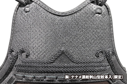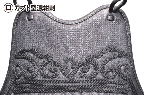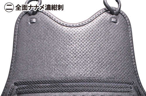 胸:ナナメ濃紺刺山型鮫革入
