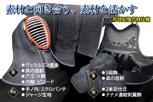 甲手を「洗えるジャージ甲手」に変更した防具セット |