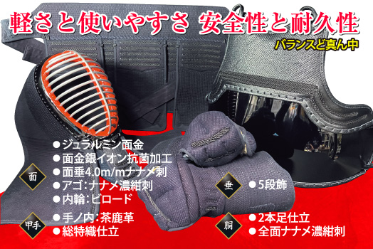 面金銀イオン抗菌加工・面垂4m/mナナメ刺・内輪:ビロード