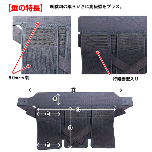 ※特織とは…一般的な防具用織刺より太くやわらかい糸で織り込んだ厚地織刺。