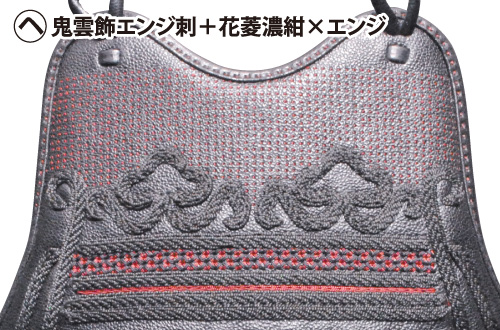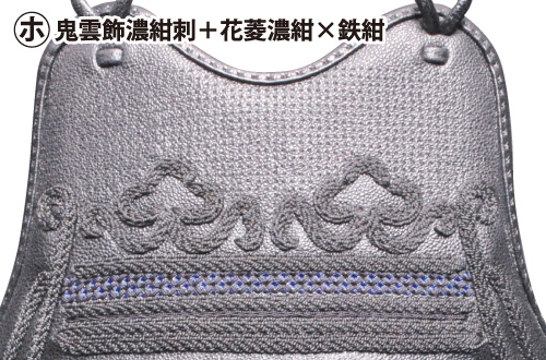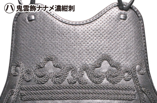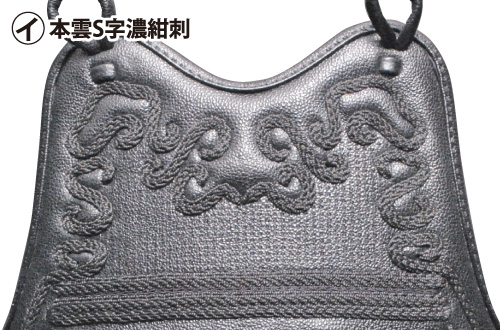 胸:ナナメ濃紺刺山型鮫革入